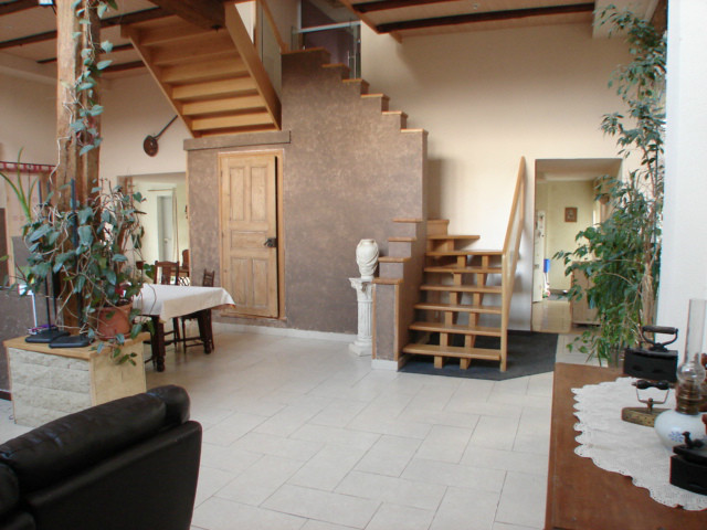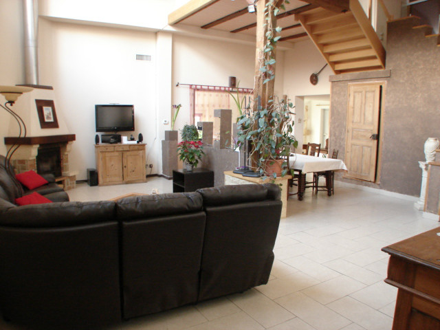 La maison n'est pas en reste, avec une très belle entrée donnant sur un salon/séjour de 65 m² lumineux grâce à son toit cathédrale et chaleureux avec sa cheminée. A l’étage, vous découvrez une magnifique mezzanine et une sympathique chambre.